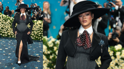 Rihanna shows off baby bump in bold blazer-skirt look at the 2025 Met Gala; Pop sensation is set to welcome third child with A$AP Rocky | English Movie News